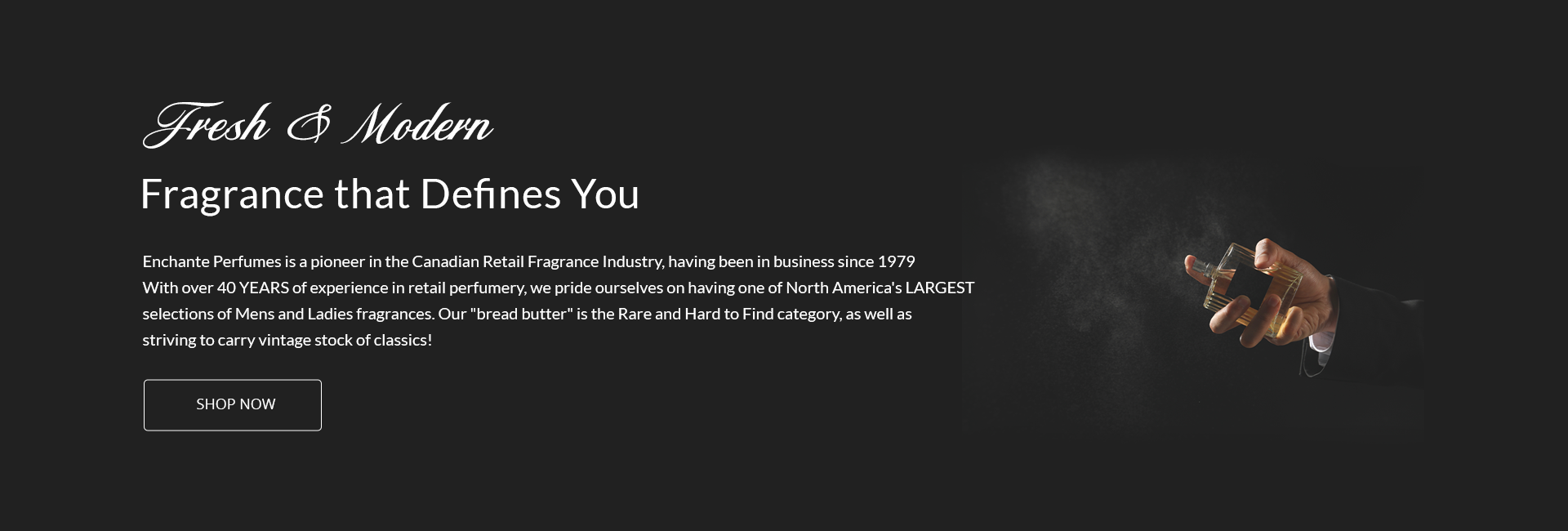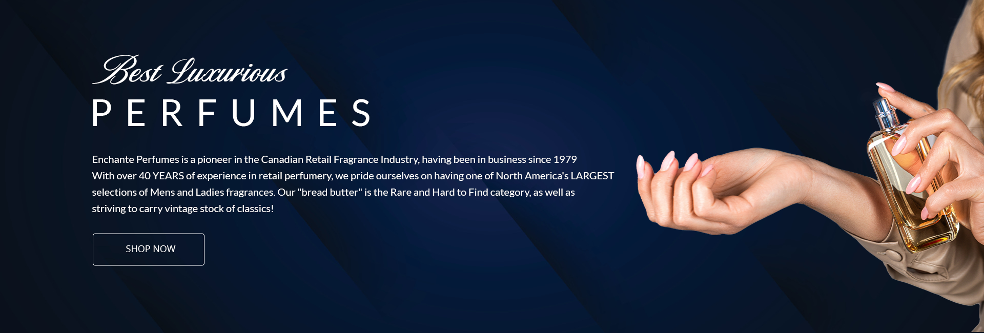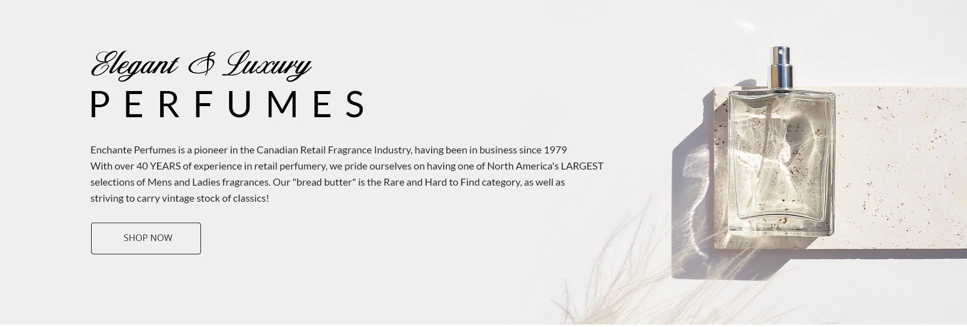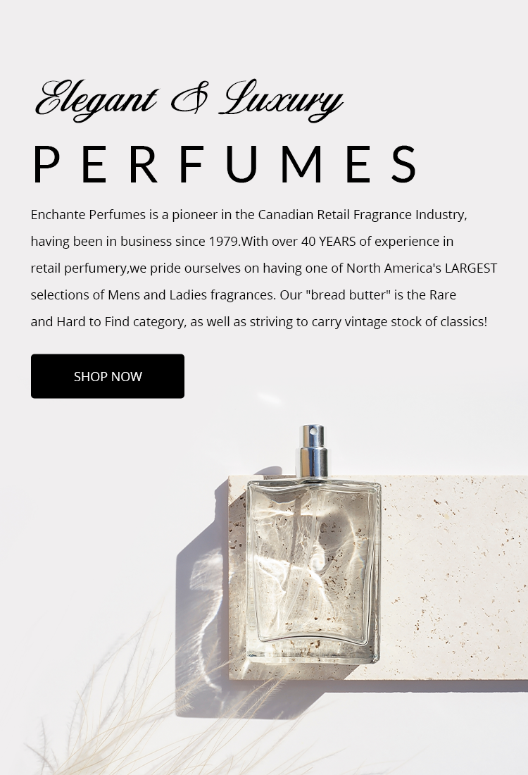 Enchante Perfumes is a pioneer in the Canadian Retail Fragrance Industry, having been in business since 1979. Our "bread butter" is the Rare and Hard to Find category, as well as striving to carry vintage stock of classics!